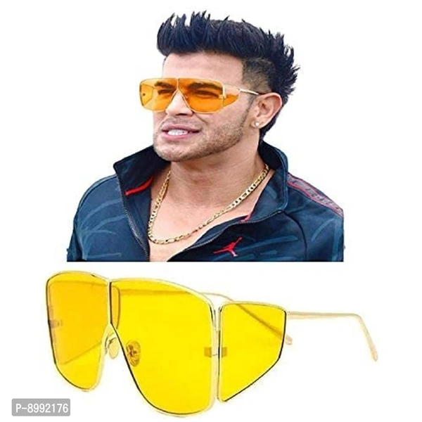 Badshah Shail Khan Sunglasses Yellow COlour for Men and Women . Arzonai is committed to provide high quality fashionable and trendy shades or sunglasses. All Arzonai sunglasses are made using top notch materials. Arzonai unisex sunglasses are ideal for getting a charge out of the daylight, travelling, driving, fishing or shopping. Show your unique and top of the line i.e high-end taste with these mens/womens sunglasses. What's more, these shades for men/women are light weighted to enable you long time wearing without fatigue. Arzonai eyewear designed to help protect the eyes from excessive sunlight. Arzonai sunglasses originally invented to reduce distracting glare and allow more comfortable viewing in bright light. Arzonai sunglasses consist of a pair of light-filtering lenses and a frame to hold them in place. The vast majority of lenses are made of colorized plastic, such as polycarbonate. However, glass is still employed for high quality. There are two key elements to consider regarding sunglasses design, fashion and function. In the last few decades sunglasses have become a high fashion item, and the current design process reflects this status. Whether you are on your way to work or travelling abroad with family, lifestyle accessory like Sunglasses help to add a touch of sophistication and class to your otherwise mundane and regular daily wear. When it all comes down to it, eye catchy sunglasses and intricately designed and finished timepieces are what separate you from the rest.
