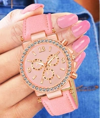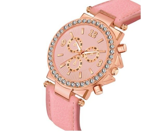 Name: Elegant Women Pink Leather Analog Watch